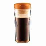 BODUM Medium Anywhere Travel Mug with Spill Proof Locking Lid, 0.35 l, 12-Ounce, Orange Features